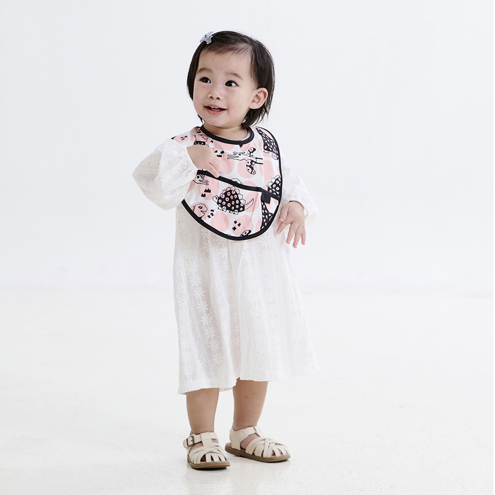 蛋型圍兜兜,是針對四個月以上,開始食用副食品或者嘗試練習自行用餐的寶寶而設計。嘗試自行進食是寶寶認識質材、感官發展的一大步,抓玩、拋擲、掉落食物,都是必經的階段。輕盈、無感的穿戴圍兜兜,讓媽媽能一天多次的輕鬆善後。